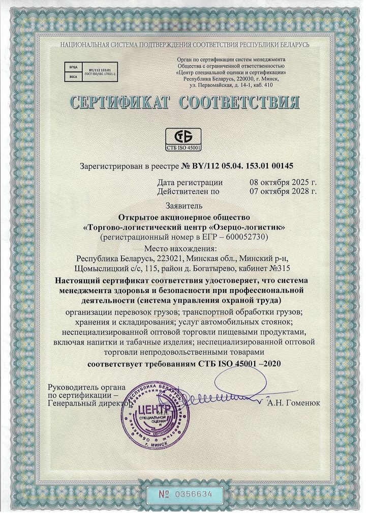 ОАО «Торгово-логистический центр «Озерцо-логистик» -уполномоченный экономический оператор III типа, является владельцем одного из крупнейших складов временного хранения на территории Республики Беларусь. ОАО «Торгово-логистический центр «Озерцо-логистик» оказывает следующие услуги: хранение и складирование товаров, сопутствующие услуги складской логистики, комплекс услуг по размещению товаров под таможенную процедуру временного хранения и таможенного оформления, оптовая торговля, транспортные услуги. В своей деятельности общество руководствуется Конституцией Республики Беларусь, законами Республики Беларусь, решениями Президента Республики Беларусь, приказами Управляющего делами Президента Республики Беларусь, Уставом общества, иными актами законодательства Республики Беларусь.